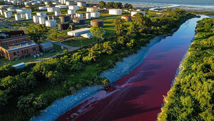 Çevre kirliliği konusundaki tepkiler artarken, yetkililer, kırmızı renge, ahşap renklendirmek için kullanılan bir tür kimyasal olan anilinin neden olabileceğini kaydetti.