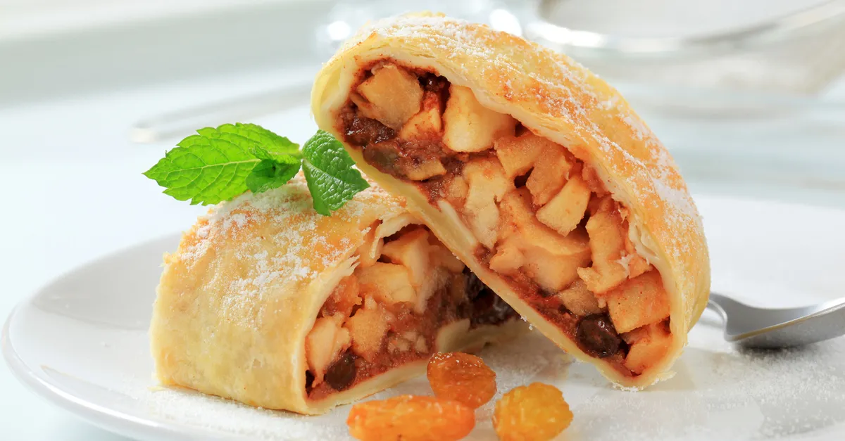Hamur dinlendiği esnada elmalı iç harcı hazırlamak için; yıkadığınız elmaları dört eşit parçaya bölün. Çekirdekli kısımlarını aldıktan sonra kabuklarını soyun. İnce ince, cips şeklinde ya da küçük küpler halinde elmaları doğrayın. Tereyağı ve toz şekeri tavaya alın. Karamel rengini alana kadar yaklaşık 2-3 dakika pişirin. Doğranmış elmalar, file badem ve ıslatıp suyunu süzdüğünüz kuru üzümleri ekledikten sonra 10 dakika kadar kavurun. Vanilya ve toz şekeri koyduktan sonra karıştırdığınız iç harcı ocaktan alın, soğuması için bir kenarda bekletin.