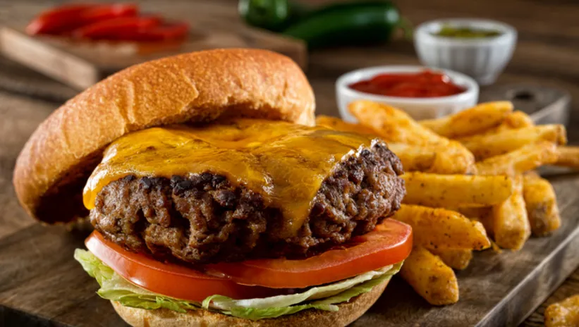 Ekmek tabanına köfteyi koyun, üzerine peynir, domates, marul, turşu ve soğan ekleyin. Soslarla tamamlayın. Afiyet olsun!