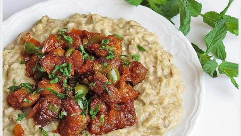 Beğendi kıvamına gelen patlıcan püresini servis tabağına alın.
