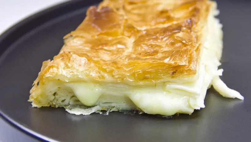 Böreği dilimleyin ve önceden ısıtılmış,195 derece ayarlanmış fansız programda yufkalar kat kat ayrılana kadar kontrollü bir şekilde pişirin.