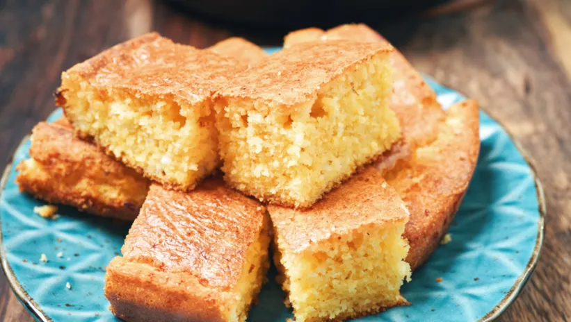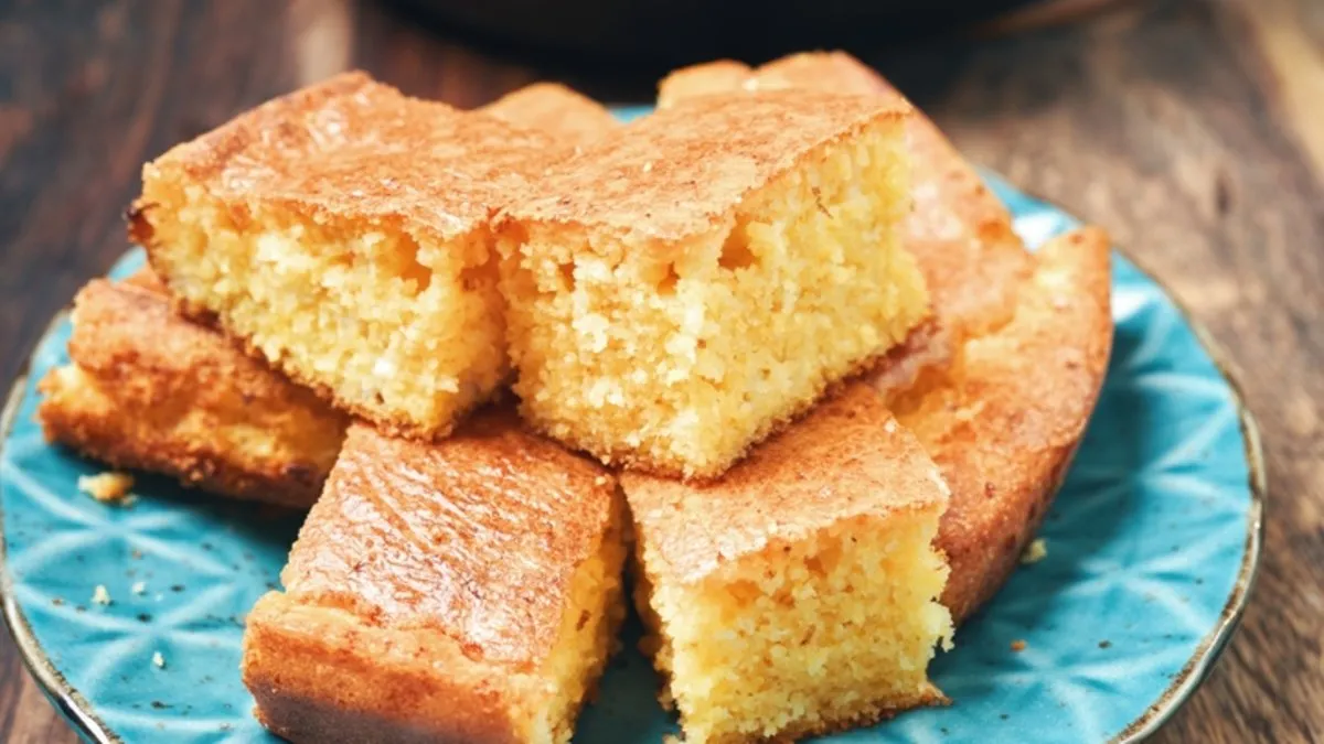 Bir kaba mısır unu, beyaz un, şeker, tuz ve kabartma tozunu ekleyin. Karıştırarak harmanlayın.