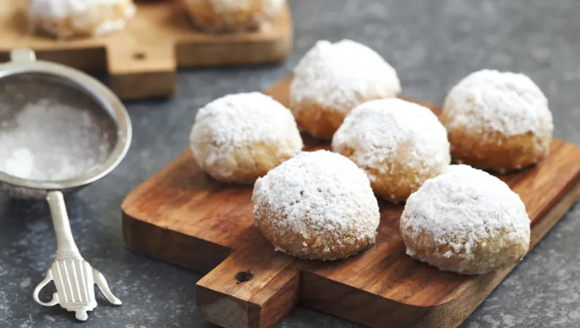 Fırından çıkarığınız kurabiyelerinizi pudra şekeri ve tarçın karışımına batırın.