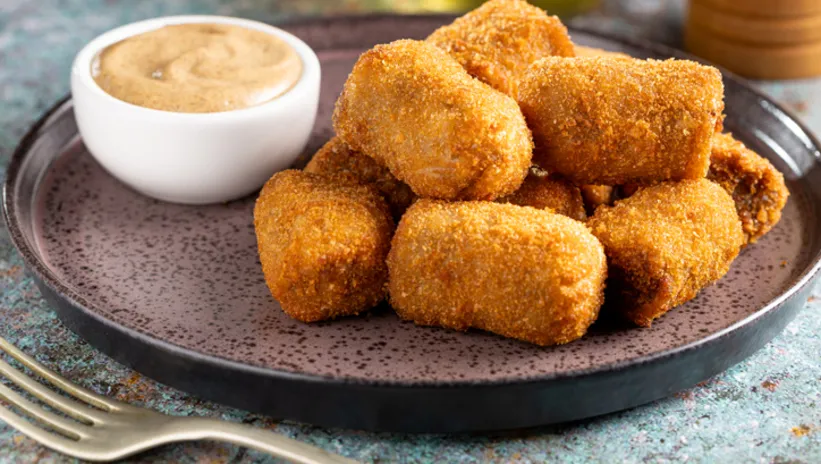 5. Derin bir tavada sıvı yağı kızdırın. Kroketleri altın sarısı olana kadar kızartıp kağıt havlu üzerine alın.