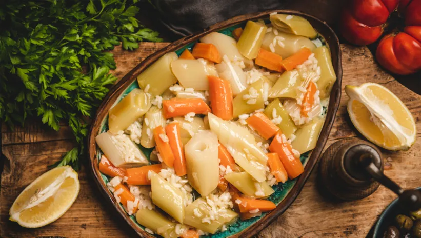 Havuç ve pırasa yumuşadıktan sonra üzerine pirinci ilave edin ve birkaç dakika daha soteleyin.