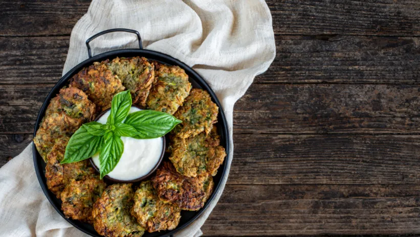 Geniş bir kaba rendelenmiş kabakları, doğranmış yeşillikleri, beyaz peyniri (isteğe bağlı), yumurtaları, unu ve kabartma tozunu ekleyin. Tuz, karabiber ve kırmızı biberi de ekleyip iyice karıştırın.
