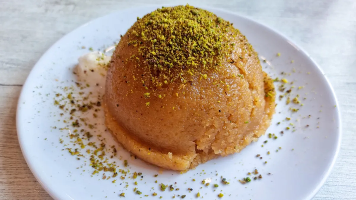 Kavrulmuş irmiğin üzerine sıcak şerbeti dökün. Dikkatli olun, sıçrayabilir.
