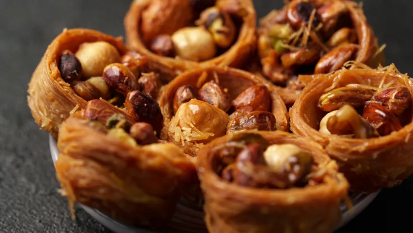 Tel kadayıfı iki parmağımızın arasında sarıp büyük borcama dizin.