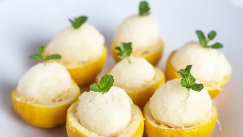 Ertesi sabah buzluktan çıkardığınız karışımı kaşık yardımıyla hafif bir şekilde karıştırın. Limon kaselerinin içine paylaştırın. Taze nane ile süsleyerek servis yapabilirsiniz.