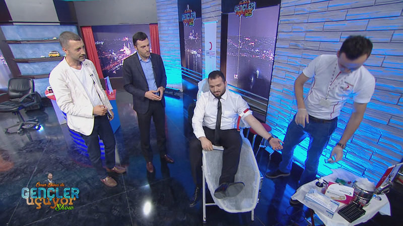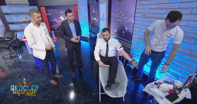 Sevilen talkshow programı Ömer Ekinci ile Gençler Uçuyor bu hafta ilginç anlara sahne oldu. Türk Kızılayı'nın 147. yılında kan bağışının önemine dikkat çekmek için programın sunucusu Ömer Ekinci ve sevilen radyocu Afrikalı Ali canlı yayında sedyeye yattı, kan bağışladı.