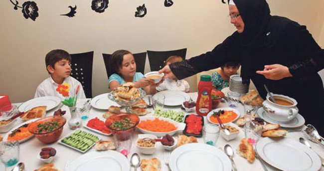 İftarda bir anda iyi çiğnemeden lokmaları yutmaları ve fazla gıda tüketmeleri hazımsızlık sorunlarına yol açabilir. Şeker ihtiyaçlarını öncelikli olarak şeftali, karpuz, kayısı, üzüm gibi sulu meyvelerden sağlamaları vitamin ve mineral dengesinin korunmasını sağlayacaktır.