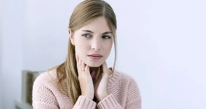 Ses kısılması en öne çıkan belirtileri arasındadır. Bazı durumlarda ses tamamen yitirilebilir. Boğazda kuruluk hissi hastalık öncesinde sıkça rastlanan sorunlardan ve belirtilerden bir tanesidir. Bazı durumlarda yanma da hissedilebilir… Hasta boğazında sürekli bir cisim varmış gibi bir hisse kapılır, ve sürekli olarak boğazındaki gıcık rahatsızlık verir. Aşırı ve kuru öksürük önemli belirtiler arasında yer alır. Hastalık kendini göstermeye başlayınca da balgamlı öksürük meydana gelir.