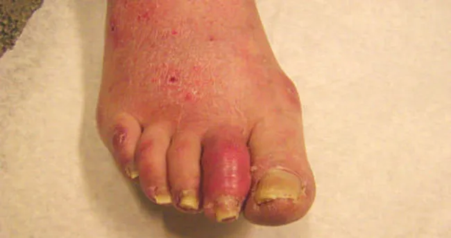 Topuk ve ayak tabanındaki bağların kemiğe yapışma yerlerinde oluşan yangı (entesitis); topuk veya ayak tabanlarında ağrı, hassasiyet ve yürüme güçlüğüne yol açabilir. Entesitis reaktif artrit tanısı için önemli bir bulgudur. Tüm parmakta ağrılı, kızarıklık ve şişliğe yol açan sosis parmak görünümü de oluşabilir.