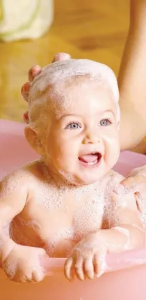 Bebeğiniz için kullanacağız şampuan ve sabun, mutlaka bebekler için üretilen özel ürünlerden olmalı. Yetişkin sabun ve şampuanları, bebeğinizin gözlerini yakacağı gibi içinde bulunan kimyasallar onun narin cildi için de zararlıdır.
