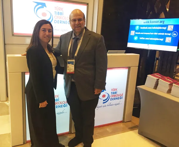 Konferans öncesi TTOD Basın ve Halkla İlişkiler Komisyonu Başkanı ve Yönetim Kurulu Üyesi Prof. Dr. Özlem Er'le sohbet eden Prof. Dr. Esener, kansere karşı yapılan tedaviye vücudun rezistansını, hastanın kendisinin bile kan testiyle yapabileceği bir aşamaya gelindiğini belirtti.
