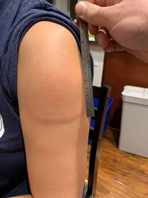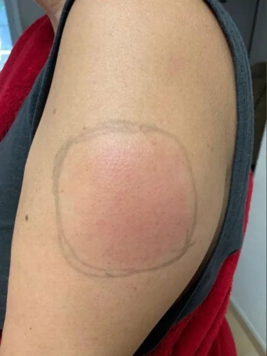 ABD'de Massachusetts Genel Hastanesi Dermatoloji Bölümü Direktörü Doktor Esther Freeman söz konusu yan etkiye yönelik, "İnsanlara bunun bilinen bir etki olduğuna dair güvence vermek isteriz. Birkaç gün kolunuzda büyük kırmızı leke olması hoş olmayabilir, ancak gerçek şu ki paniğe gerek yok ve ikinci dozu yaptırmamak için bir neden yok" diyerek yan etkinin zararsız olduğunu belirtti.