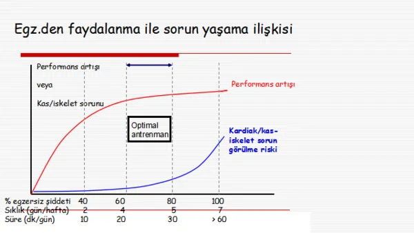 Fizik Tedavi ve Rehabilitasyon Uzmanı, Spor Hekimi Prof. Dr. Tolga Aydoğ "Grafikte; egzersizden faydalanma ile sorun yaşama ilişkisi görülmektedir. Kişinin kendi sağlık durumuna uygun egzersiz yerine zorlayıcı egzersiz yapması ciddi tehlikelere yol açabilir. Spor yaparken görülebilen ani ölümler, stres kırıkları, kas/tendon yaralanmaları ve kopmaları sık yaşanabilecek sağlık sorunlarına örnek olarak verilebilir." diyor.