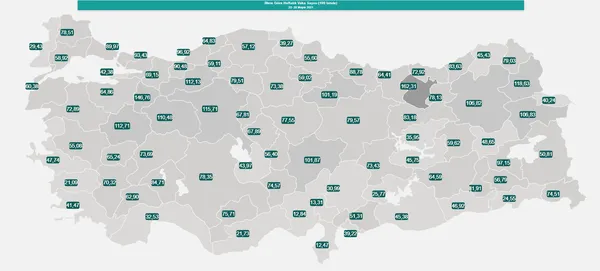 Sağlık Bakanı Fahrettin Koca, illere göre 100 bin nüfusa karşılık gelen haftalık vaka sayısını gösteren haritanın güncel halini paylaştı.