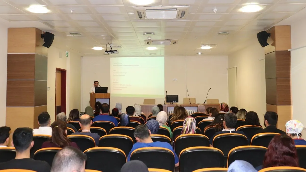 Şanlıurfa Harran Üniversitesi Hastanesi başarılı hizmetlerinin yanında eğitim çalışmalarına da önem veriyor. Personel eğitimlerini sürdüren Harran Üniversitesi Hastanesi'nde Tıbbi Onkoloji Dr. Öğr. Üyesi Oğur Karhan tarafından 1-7 Nisan Kanser haftası nedeniyle konulu seminer verildi.