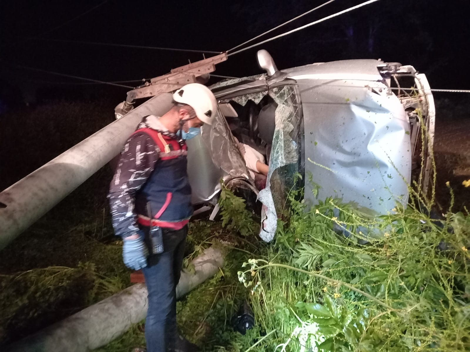 Sakarya’nın Akyazı ilçesinde çarpıp devirdiği beton elektrik direğinin altında kalan otomobilin sürücüsü yaşamını yitirdi.