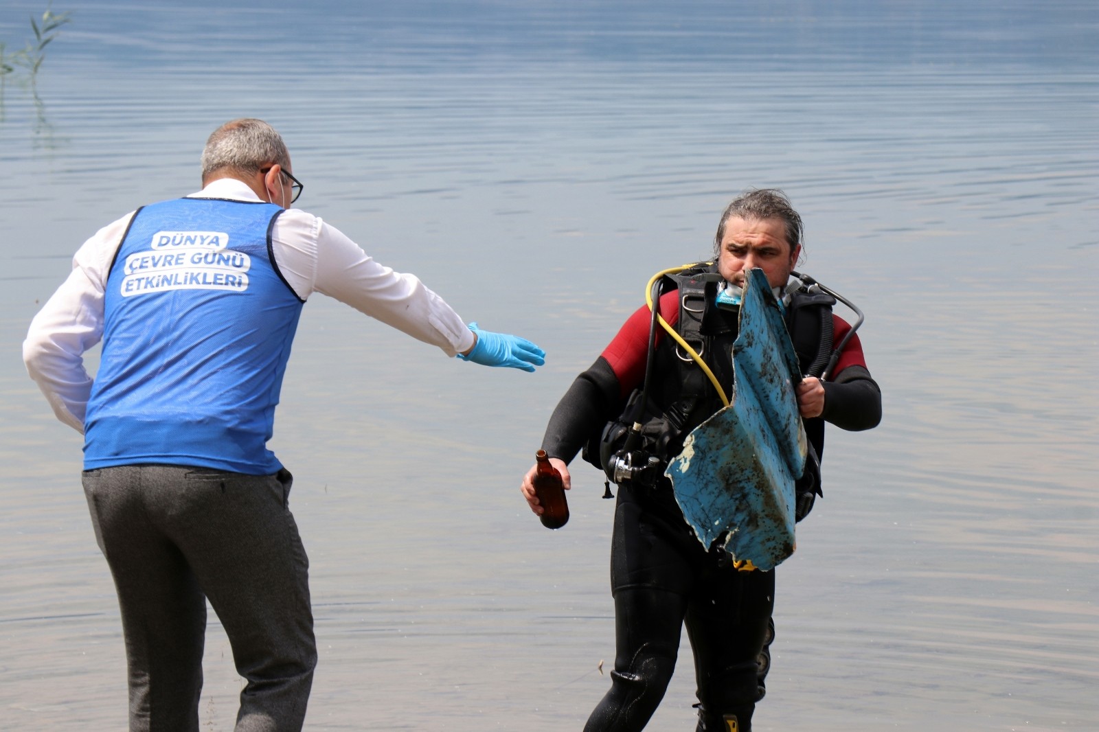 Dünya Çevre Günü etkinlikleri kapsamında Sapanca Gölü’nde dalgıçlar eşliğinde temizlik çalışması yapıldı. Yapılan çalışmalar havadan ve su altından da görüntülendi. Doğayı zehirleyen; cam, plastik ve kimyasal atıkların toplanıldığı temizlik çalışmalarına ekiplere yardım eden Sakarya Büyükşehir Belediye Başkanı Ekrem Yüce, “Sapanca Gölü şehrimiz için çok önemli. Gölü korumak, gelecek nesillere miras bırakmak adına yeni çalışmalar için hazırlıklarımıza başladık. Bir kez daha herkesi gölümüzü korumaya davet ediyorum” ifadelerine yer verdi.