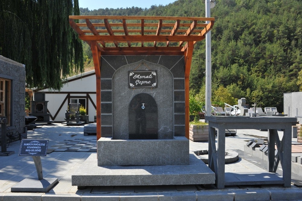 Özel tasarımlı hayrat çeşmesi ilgi görüyor Vefat etmiş yakınlarının hayrına çeşme yaptırmak isteyen vatandaşlara da hizmet veren tesis, özel tasarımlarla hayrat çeşmeleri üretiyor. Yaklaşık 2 ton ağırlığındaki çeşmeler, adreslerine teslim edip montajı yapılıyor. En çok ilgiyi ise ismini tesis bahçesine dikilen asma bitkisinden alan ‘asmalı çeşme’ görüyor. Ahşapla da kombine edilen çeşmenin arkasında ise geniş hacimli saksı buluyor.