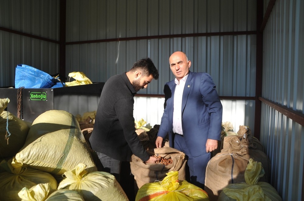 Fındık ve ceviz alanlarını gezen Başkan Alaattin Gülal, üreticilerle sohbet ederek gündemi değerlendirdi. Başkan Gülal, "Geçtiğimiz yıllara göre ceviz ve fındıktaki rekolte ciddi manada düşük. Geçtiğimiz yıl 700 bin ton civarında olan fındık, bu yıl 500 bin ton civarında. Rekolte tahminleri tamamen alt üst oldu. Son yılların en sıcak mevsimi geçti. Cevizde üretim yarı yarıya düştü. Ceviz ülkemizde ve dünya için önemli bir faktör. Dünya ihtiyacını karşılayacak ceviz ve fındığın olmadığı açıkça görünmektedir. Devletimizin açıklamış olduğu fındıktaki fiyat gayet iyi. Ancak son dönemlerde uluslararası piyasada dolar ve euronun artışı ile açıklanan 22 liralık fiyatın bugün Türk Lirası bazında 27 lira, 28 lira olması gerekli. 25 liraya çıkan fiyatlar son dönemlerde 23 liraya gerilemiş durumda. Avrupa piyasasındaki bazı alıcıların ülkemizdeki küçük esnafı, fabrikacı, çiftçimizi fiyatta baskı altına alması gibi bir izlenim oldu. Tabii ki bu durumda çiftçimiz de küçük esnafımız da bu paniğe kapılmadı. Fiyatlar kademeli olarak yukarıya doğru çıktı" diye konuştu.