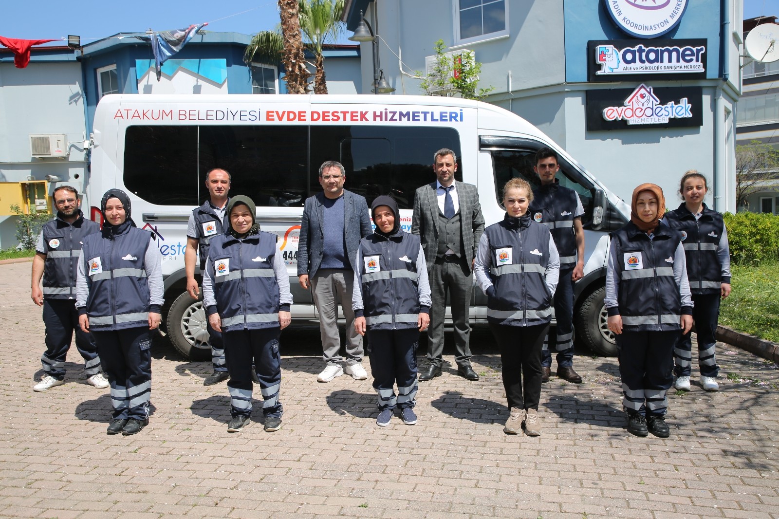 Uzman ekip kuruldu Yurttaşların evlerinde ihtiyaçlarını karşılayabilmek için Atakum Belediyesi tarafından uzman ekip kuruldu. Ekipte, çalışmanın topluma daha faydalı olması için araştırmalar yapmak için bir sosyolog, yararlanıcıların psikolojik sağlıklarını korumak için çalışacak iki psikolog, evde kuaförlük hizmeti verebilmek için bir kuaför, evlerde temizlik gerçekleştirmek için altı temizlik personeli, yaş almış yurttaşların bakımını sağlayacak iki yaşlı bakım uzmanı; tansiyon, nabız, şeker ölçümü gibi sağlık takibi yapacak bir de hemşire ile evin tamir, onarma gibi teknik ihtiyaçlarını karşılayacak iki teknik personel de yer alıyor.