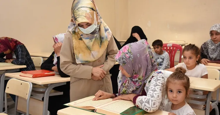 Hilvan Halk Eğitimi Merkezi işbirliği ile Hilvan Belediyesi Bağlar Kadın Kültür Merkezinde yaz okulu eğitim kursları kapsamında kız çocuğu ve yetişkin bayanlara yönelik düzenlenen yaz okulu kursunda Kur'an-ı Kerim ve dini bilgiler eğitimi veriliyor.
