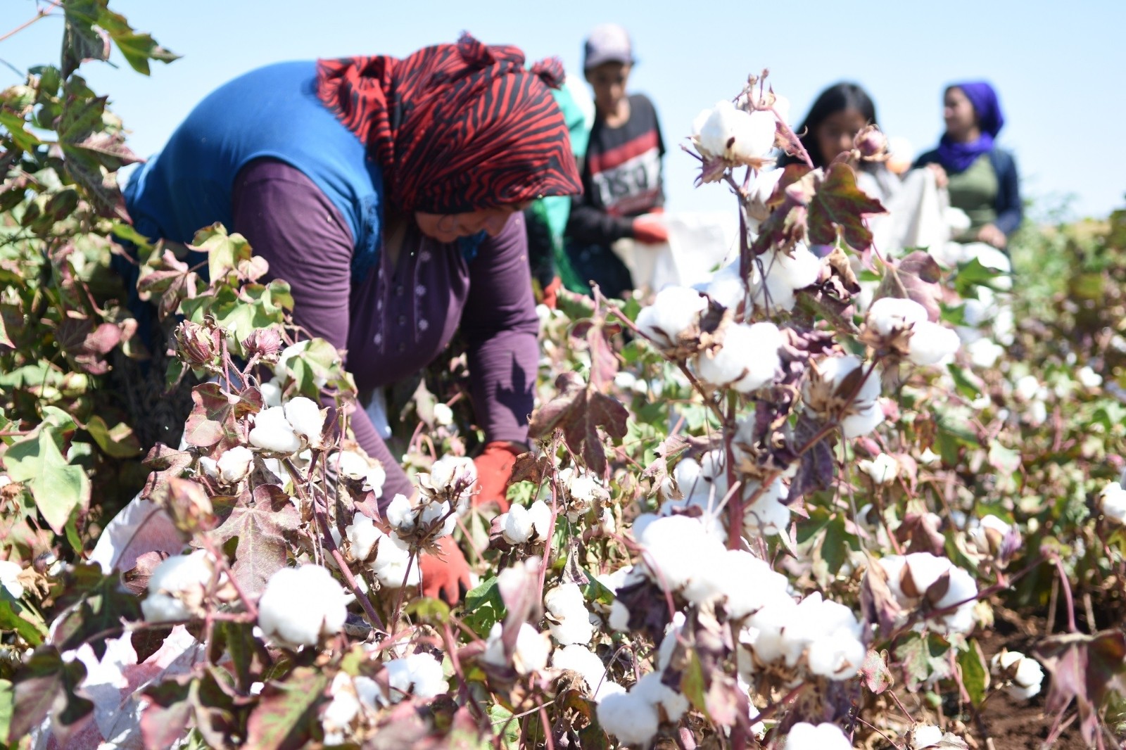 Şanlıurfa’nın Siverek ilçesinde beyaz altın olarak adlandırılan pamuğun hasadına başlandı. Bir yandan pamuk toplayan işçiler bir yandan ise türkü söylüyor. Türkiye’nin önemli tarımsal üretim merkezlerinden biri olan Şanlıurfa’nın Siverek ilçesinde ‘Beyaz altın’ olarak adlandırılan pamuğun hasadına başlandı. Tarlada çalışan işçiler, bir yandan pamuk toplarken bir yandan ise şarkı ve türkü söyleyerek eğleniyor. Üç gündür ailesiyle birlikte pamuk toplayan Kıymet Turan, pamuk toplamaya alışık olduklarını ve zorluk çekmediklerini söyleyerek, ”Sabah saat 06.00’da tarlaya gelip çalışmaya başlıyoruz. Saat 12.00’da öğle arası oluyor, dinleniyor ve yemeğimizi yiyoruz. İşimiz akşam saat 17.00 sıralarında bitiyor. İşe alışmışız, güneş altında olmamıza rağmen zor olarak görmüyoruz. Suyumuz var, elektriğimiz var. Bir de servisle gelip gidiyoruz. Çok şükür çalışıyoruz, çalışmak her şeyden güzel. Bu sene yevmiyeler de güzel, memnunuz” dedi Eşi ile birlikte pamuk toplayan Erol Turan, kendi memleketlerinde çalışmaktan memnun olduklarını belirterek, “Siverek’te iş olanaklarının olması iyidir ama yetersiz. Burada bir ay çalıştıktan sonra başka illere çalışmaya gideceğiz. Pamuktan sonra, fındığa, çapaya gideceğiz” diye konuştu.