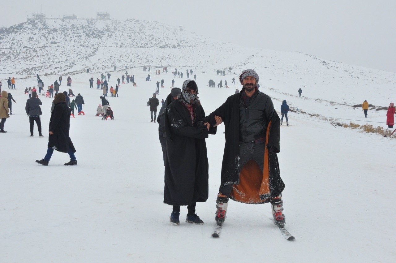 Şanlıurfa’da Güneydoğu Anadolu Bölgesi’nin tek kayak merkezi Karacadağ’da ziyaretçiler ilk önce kayak keyfi yaşadı, sonra ise halay çekti.