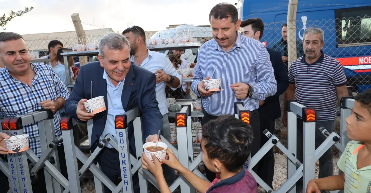 Yapılan konuşmaların ardından Şanlıurfa Büyükşehir Belediye Başkanı Zeynel Abidin Beyazgül, Vali Salih Ayhan ile Haliliye Belediye Başkanı Mehmet Canpolat vatandaşlara aşure ikram etti.