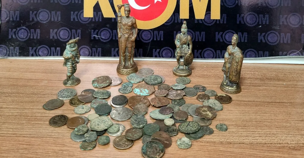 Fiziki takibe alınan şüphelinin aracı durdurularak yapılan aramalarda bir çanta içerisinde çeşitli dönemlere ait toplamda 88 adet obje ele geçirildi. Olaya ilişkin gözaltına alınan şüpheli hakkında, Kültür ve Tabiat Varlıklarını Koruma Kanunu'na muhalefet suçundan adli işlem başlatıldı.