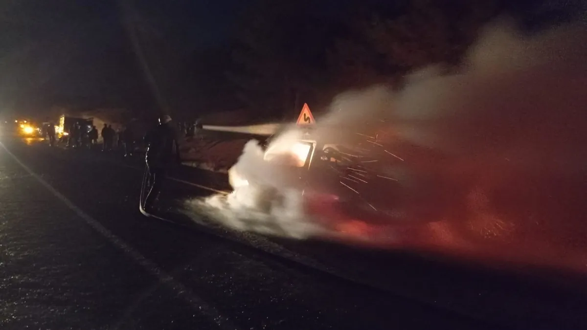 Otomobilin motor kısmından dumanların yükseldiğini gören sürücüsü Fatih E., aracını yol kenarına bırakarak, itfaiye ve jandarma ekiplerinden yardım istedi. Alev topuna dönen otomobilde patlama meydana geldi. Kısa sürede olay yerine gelen itfaiye ekipleri, yanan otomobile müdahale ederek söndürdü. Yaşanan yangında şans eseri yaralanan olmazken otomobil ise kullanılamaz hale geldi. Jandarma ekipleri yaşanan olayla ilgili inceleme başlattı.