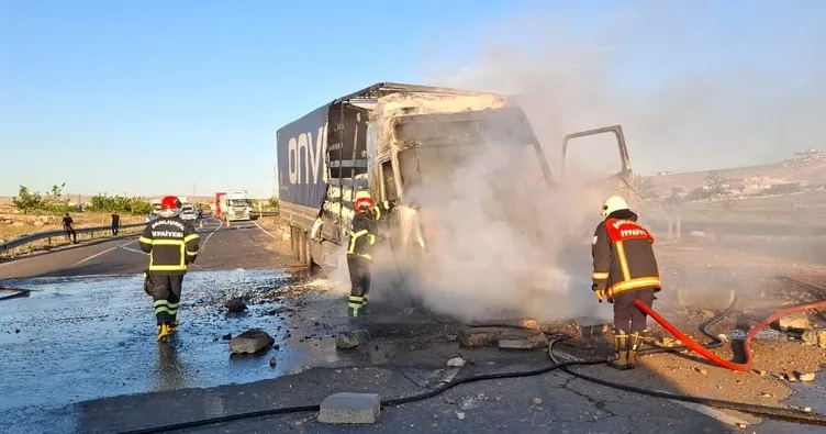 Şanlıurfa-Viranşehir karayolu Çamlıdere mevkiinde seyir halindeki bir tırda yangın çıktı. Yangını fark eden sürücülerin ihbarı üzerine olay yerine itfaiye ekipleri sevk edildi.