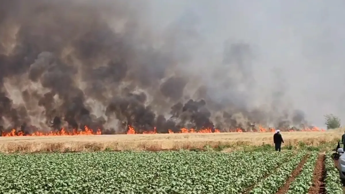 Şanlıurfa'nın Viranşehir ilçesinde çıkan yangın, bin dönüm buğday tarlasını küle çevirdi. İlçeye bağlı Elbeğdin ve Satıcık mahalleleri arasında meydana gelen yangın, rüzgârın etkisiyle kısa sürede geniş bir alana yayıldı. Yangının çıkış nedeni henüz belirlenemezken, olay ilçede büyük paniğe neden oldu. Son günlerde art arda yaşanan buğday yangınlarına bir yenisi daha eklenirken, bölge halkı ve itfaiye ekipleri alevlere karşı seferber oldu. Vatandaşlar traktörler, su tankerleri ve iş makineleriyle yangına müdahale ederken, alevlerin çevre mahallelere sıçramaması için yoğun çaba harcandı.