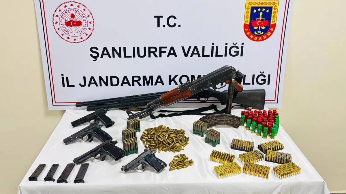 Şanlıurfa İl Jandarma Komutanlığı'nın, yasa dışı ve ruhsatsız silahlanmaya karşı başlatmış olduğu çalışmalar devam ediyor. İl genelinde eş zamanlı devam eden operasyonlar sonuç vermeye başladı. Yapılan çalışmalar kapsamında, Şanlıurfa'nın Bozova ilçesinde bir adreste yasa dışı ve ruhsatsız silahların bulunduğu tespit edildi. Tespit üzerine düğmeye basan Bozova İlçe Jandarma Komutanlığı Asayiş Şube Müdürlüğü ve Jandarma Suç Araştırma Timi (JASAT) adrese operasyon düzenledi. Adreste arama gerçekleştiren ekipler, 1 adet kalaşnikof piyade tüfeği, 4 adet ruhsatsız tabanca, 1 adet av tüfeği, 1 adet piyade tüfeği şarjörü, 8 adet tabanca şarjörü, 596 adet 9 mm fişek, 100 adet 7.62 mm fişek, 86 adet 7.65 mm fişek, 41 adet 12 cal fişek mühimmatı ele geçirildi. Operasyon kapsamında jandarma ekipleri, 1 kişiyi gözaltına aldı jandarma dlayla ilgili soruşturma başlattı.