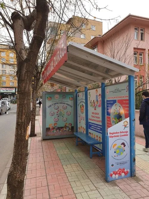Aile, Çalışma ve Sosyal Hizmetler İl Müdürü Gökhan Marakçı, "Siirt Çocuk Hakları İl Komitesi olarak ilimizde "Çocuk Hakları"na dikkat çekmek ve farkındalık yaratmak amacıyla Siirt Belediyesi ile ortak gerçekleştirdiğimiz proje kapsamında Bahçelievler Mahallesi İhsan Tan Bulvarı karşısında bulunan bir otobüs durağına çocuk haklarını konu alan giydirme yapılarak, Çocuk hakları durağı açıldığını söyledi.