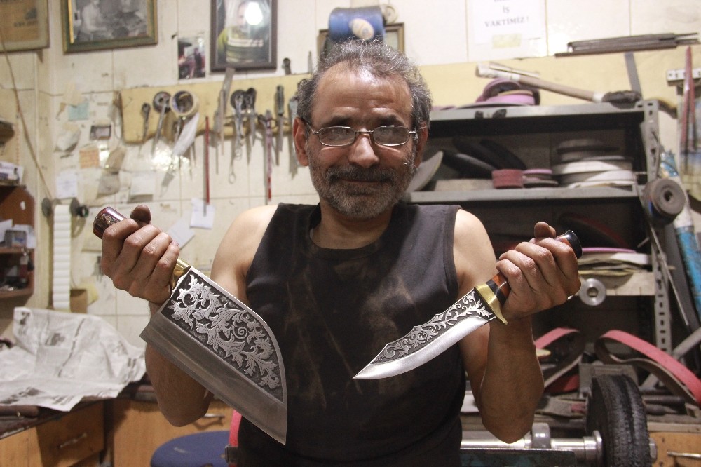 Sivas’ta özel tasarım ve Osmanlı motifi işlemeli üretilen bıçaklar yurt dışında ve yurt içinde yoğun talep görüyor. Sivas’ta babasından ve dedesinde kalan mesleği devam ettiren bıçak ustası Mustafa Argut, el işçiliği ile Osmanlı motifi işlemeli bıçak üretti. Gravür yöntemi kullanılarak yapılan bıçakta yüksek kalitede çelik kullanılıyor. Üst düzey çelikler kullanılarak yapılan özel üretim bıçağın sap kısmı ise manda boynuzu, geyik boynuzu ve sarı pirinç balçaktan oluşuyor. Genel olarak koleksiyoncuların tercih ettiği bıçaklar yurt içinde ve yurt dışında yoğun ilgi görüyor. Bıçak ustası Argut tarafından el emeğiyle yapılan özel bıçakların fiyatı ise dudak uçuklatıyor. 2 bin lira ile 6 bin lira arasında fiyat biçilen bıçaklar göz kamaştırıyor.