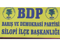 Şırnak'ın Silopi ilçesinde Barış ve Demokrasi Partisi Silopi ilçe Başkanlığının yeni tabelası asıldı. Tabela Anayasa Mahkemesi tarafından kapatılan Eski Demokratik Toplum Partisinin binasın takıldı Yeni takılan Barış ve Demokrasi Partisinin tabelasına partiler yoğun ilgi gösterirken Parti çalışmalarına ayrıca hız verildiği bildirildi Kurucu genel başkanlığını avukat Mustafa Ayzit"in üstlendiği Barış ve Demokrasi Partisi"nin kuruluş dilekçesi 3 Mayıs"ta İçişleri Bakanlığı"na verilmişti. Sarı zemin üzerinde yeşil meşe ağacını amblem olarak kullanan BDP"nin 42 kurucusu arasında DTP"nin avukatı Mahmut Tanzi, kapatılan HADEP eski Diyarbakır Bağlar Belediye Başkanı Cabar Leygara, eski Sur Belediye Başkanı Cezayir Serin gibi isimler de bulunuyor.
