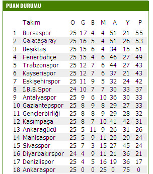 PUAN DURUMU ŞÖYLE OLUŞTU;
