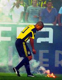 Fenerbahçe'nin Santos ile bulduğu 30. dakikadaki golün ardından sahaya atılan meşaleleri anons da durduramadı. Soyunma odasına giden hakem 10 dakika sonra geri geldi ve bu kez Arda ve Volkan Demirel mikrofonu eline alıp seyircileri anonsla sakin olmaya davet ettiler.