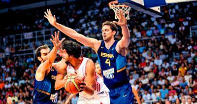 FIBA 2014 Dünya Kupası'na hazırlanan 12 Dev Adam, Abdi İpekçi'de karşılaştığı turnuvanın ev sahibi İspanya'ya 70-63 kaybetti ve 4. hazırlık maçından da yenilgi ile ayrıldı. Karşılaşmadan önce hayata veda eden Beşiktaş Onursal Başkanı Süleyman Seba için saygı duruşu yapıldı.