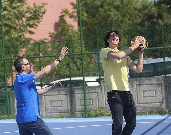 Anıttepe Yaşam Boyu Koşu Parkuru'nda gençlerle 3x3 basketbol oynayan ve yürüyüş yapan ikili, vatandaşların da büyük ilgisini gördü. Ardından Eymir Gölü kenarında bisiklet süren Kasapoğlu ve milli basketbolcu,