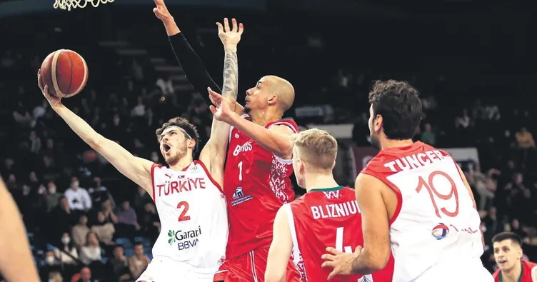 12 Dev Adam, Şehmus ve Muhsin'in etkili oyunuyla direnmeye çalıştı. Ancak 39. dakikada farkı 17 sayıya çıkaran Belarus, salondan 84-70 galip ayrıldı. Rakip takımda Maksim Salash 26 sayıyla maçın en skorer ismi oldu.