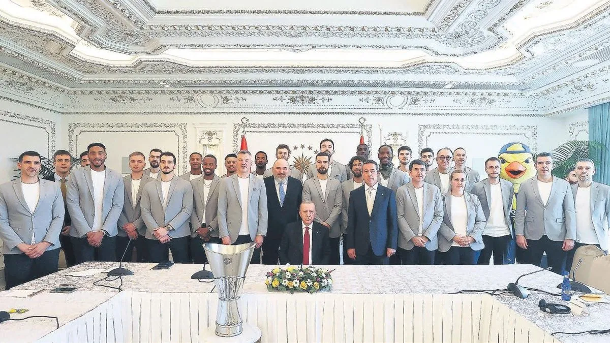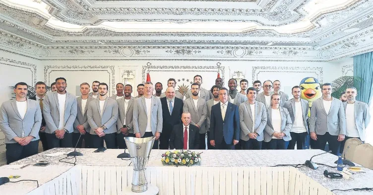 Cumhurbaşkanı Recep Tayyip Erdoğan, şampiyonları kabulünü dün de sürdürdü. THY Avrupa Ligi'nde 8 yıllık özlemi bitiren ve tarihinde ikinci kez Avrupa'nın en büyüğü olan Fenerbahçe Beko'yla buluştu. Vahdettin Köşkü'ndeki kabulde, Gençlik ve Spor Bakanı Osman Aşkın Bak, F.Bahçe Başkanı Ali Koç, kulübün basketbol şube sorumlusu Sertaç Komşuoğlu, Litvanyalı koç Jasikevicius ve basketbolcular hazır bulundu.