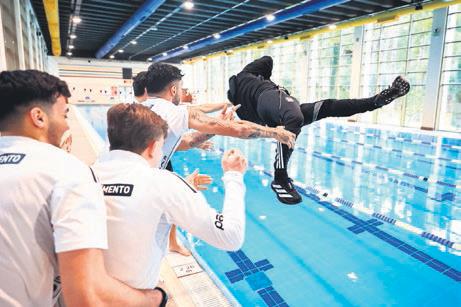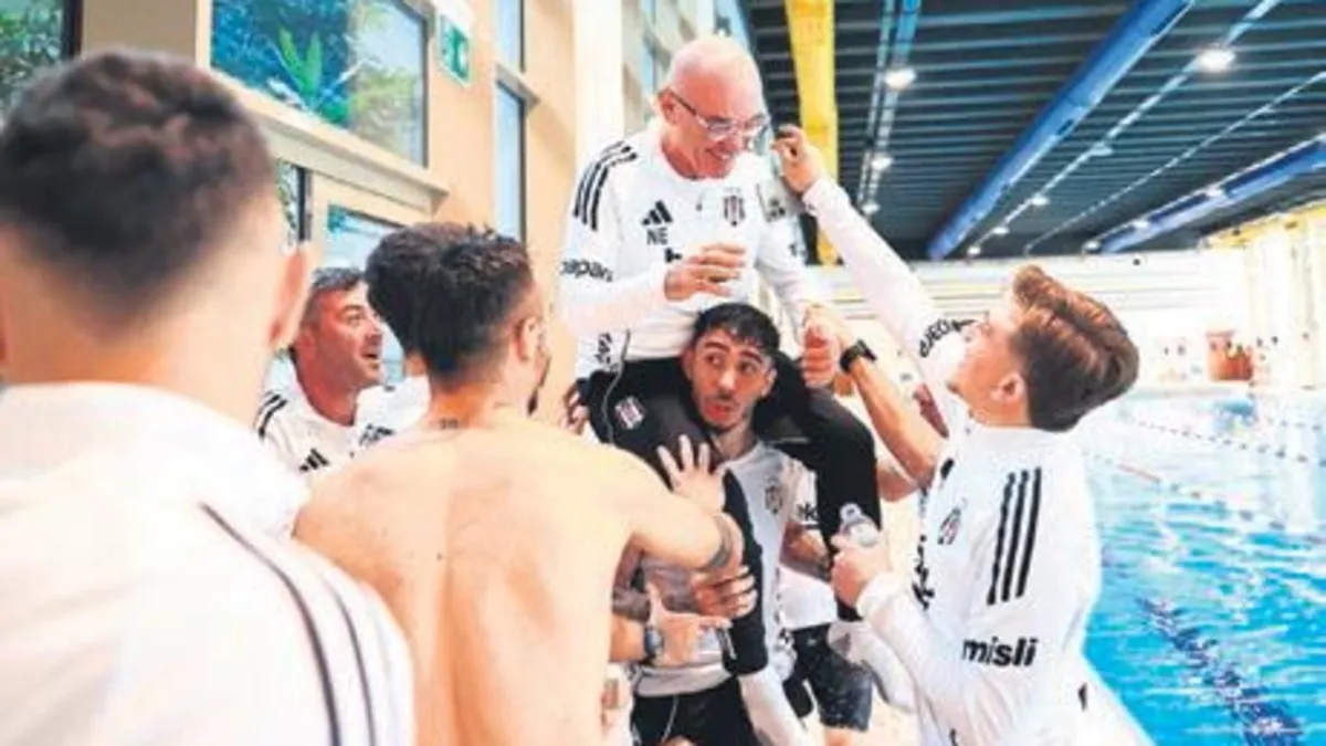 İki hoca, talebeleri tarafından havuza atılırken ortaya oldukça renkli görüntüler çıktı. Siyah-beyazlılar, öğleden sonra ise saha çalışması ile günü tamamladı.