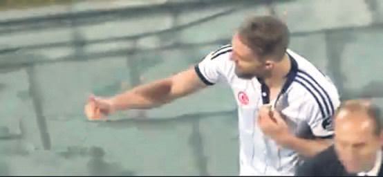Caner'in topu fırlatıp çıkması sonrası Bursaspor Teknik Direktörü Şenol Güneş, hareketi hakem Aydınus'a yaptığını sandığı oyuncuya kırmızı gösterilmesini istedi. Aydınus 'bana yapmadı' işareti yaptı, sonra Güneş'e durumu izah etti.