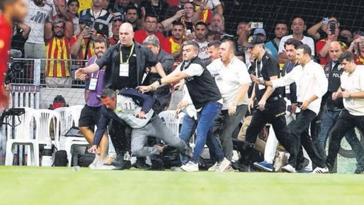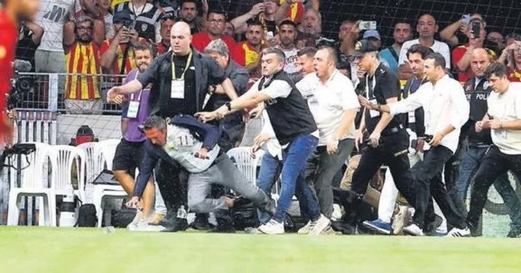 Polis ve özel korumalar saha içinde Koç'u ablukaya aldı. Sahaya girmek isteyenlere polis engel olurken, Koç akreditasyon kartlı görevli bir kişinin itmesiyle yere düştü. F.Bahçe Başkanı daha sonra polis kalkanıyla protokol tribününe çıktı ve olaylar son buldu. Bu arada Koç'a saldırıda bulunan akreditasyon kartlı Göztepe görevlisi gözaltına alındı.