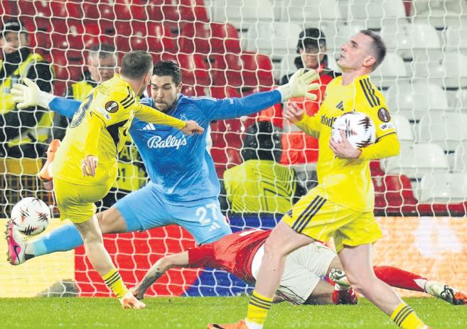 Ederson'un sakat, Mert Günok ise UEFA listesinde olmadığı için Tarık Çetin kariyerinde ilk kez bir Avrupa maçında kaleye geçti. 29 yaşındaki file bekçisine ilk yarıda iş düşmedi. Bir gol yemesine rağmen özellikle skor 2-0'ken çok kritik bir kurtarışa imza attı. Mutlak 3 gole izin vermedi